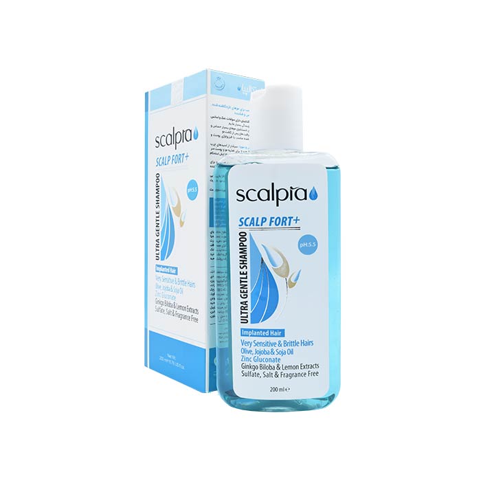 - شامپو مناسب برای موهای تازه کاشته شده بسیار حساس و شکننده اسکالپیا از برند ایرانی اسکالپیا یکی از محصولات مراقبت از مو پس از کاشت مو می باشد که در بطری های 200 میلی لیتری تولید می گردد. اینشامپو را میتوان از زمان کاشت مو تا 6 ماه پس از ان بدون نگرانی استفاده کرد زیرا ضمن تقویت موای کاشته شده میتواند از ریزش موها جلوگیری نماید و از طرفی خارش، شوره و التهاب کف سر پس از کاشت مو را کاهش دهد.